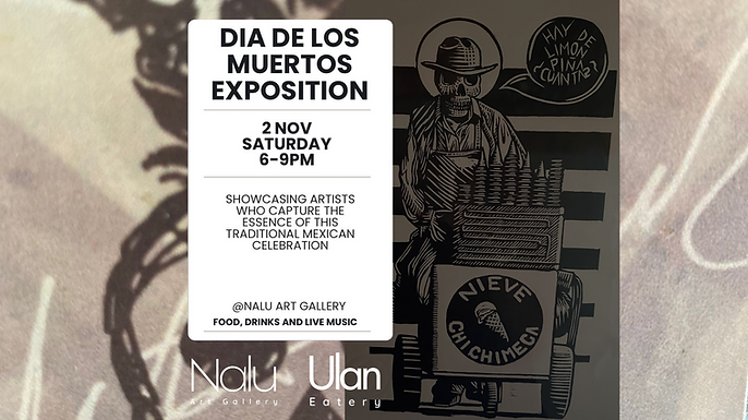 Join us at *Nalu Art Gallery* on *November 2nd from 6-9pm for a vibrant and meaningful **Dia de los Muertos* art exhibition. This special event will showcase the works of talented artists who capture the essence of this traditional Mexican celebration, where life and death are celebrated as a unified experience.